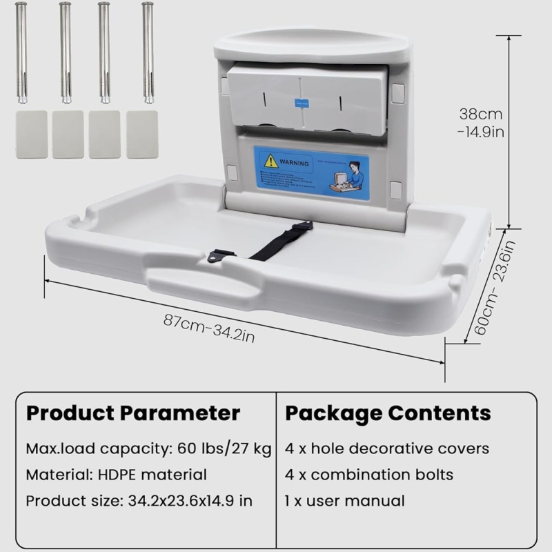 5. The baby changing station comes with mounting hardware for easy installation on any wall.